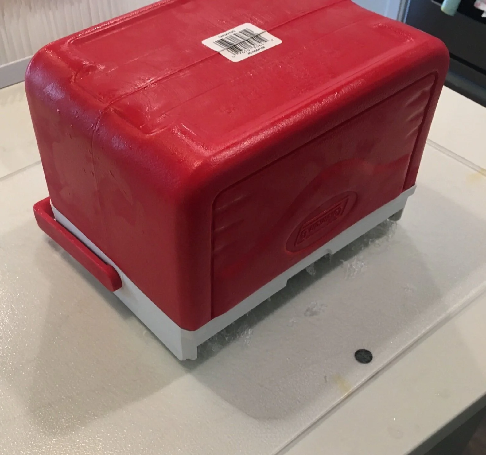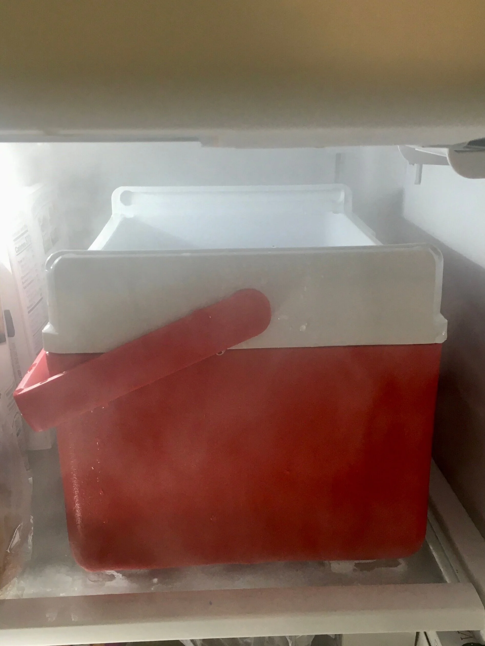 Small Coleman cooler-I got mine on amazon for about $9. It is key to get one this size, since it will need to fit in your freezer